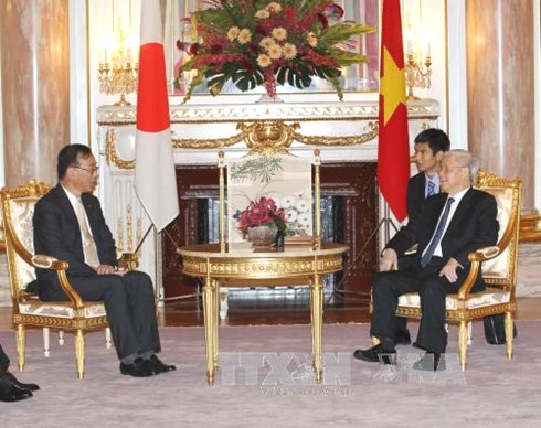 Tổng thư ký Đảng Dân chủ chủ Tự do Nhật Bản Sadakazu Tanigaki và TBT/CSVN Nguyễn Phú Trọng.