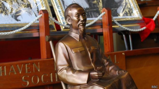 Image captionĐại sứ quán Việt Nam đã tặng bảo tàng thị trấn một bức tượng Chủ tịch Hồ Chí Minh